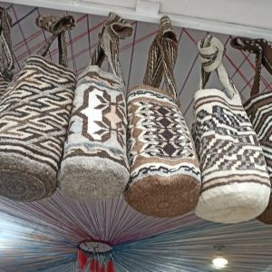 Tejemos arte y cultura de los pueblos ancestrales de la Sierra Nevada de Santa marta como mochilas arhuacas y kankuamas elaboradas en lana de Ovejo.