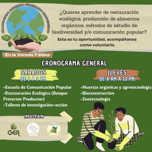 Ofrecemos espacios para practicar, aportar y aprender sobre la agricultura y procesos permaculturales de la ruralidad para reconocer la existencia de la ruralidad en el contexto urbano de la ciudad. Punto de encuentro cada Jueves de 8:00 am hasta las 12 del mediodía. Los sábados desde las 2:00 P.M. hasta las 5:00 P.M.