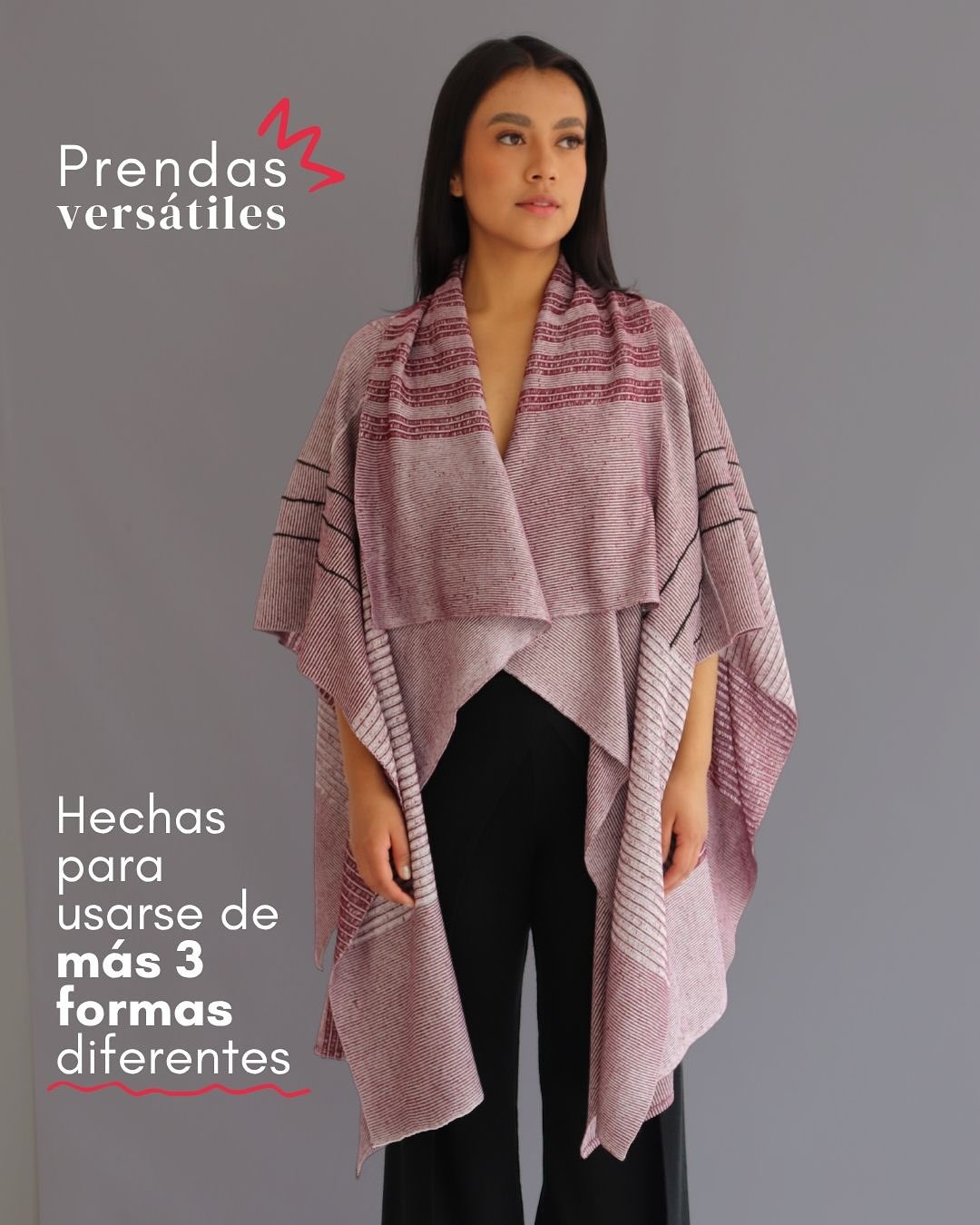 ¿Una prenda elgante y versátil que puedes usar de dos o más formas, hecha con textiles propios, cero desperdicio textil y materiales como seda alpaca, algodón o PET recuperado ?