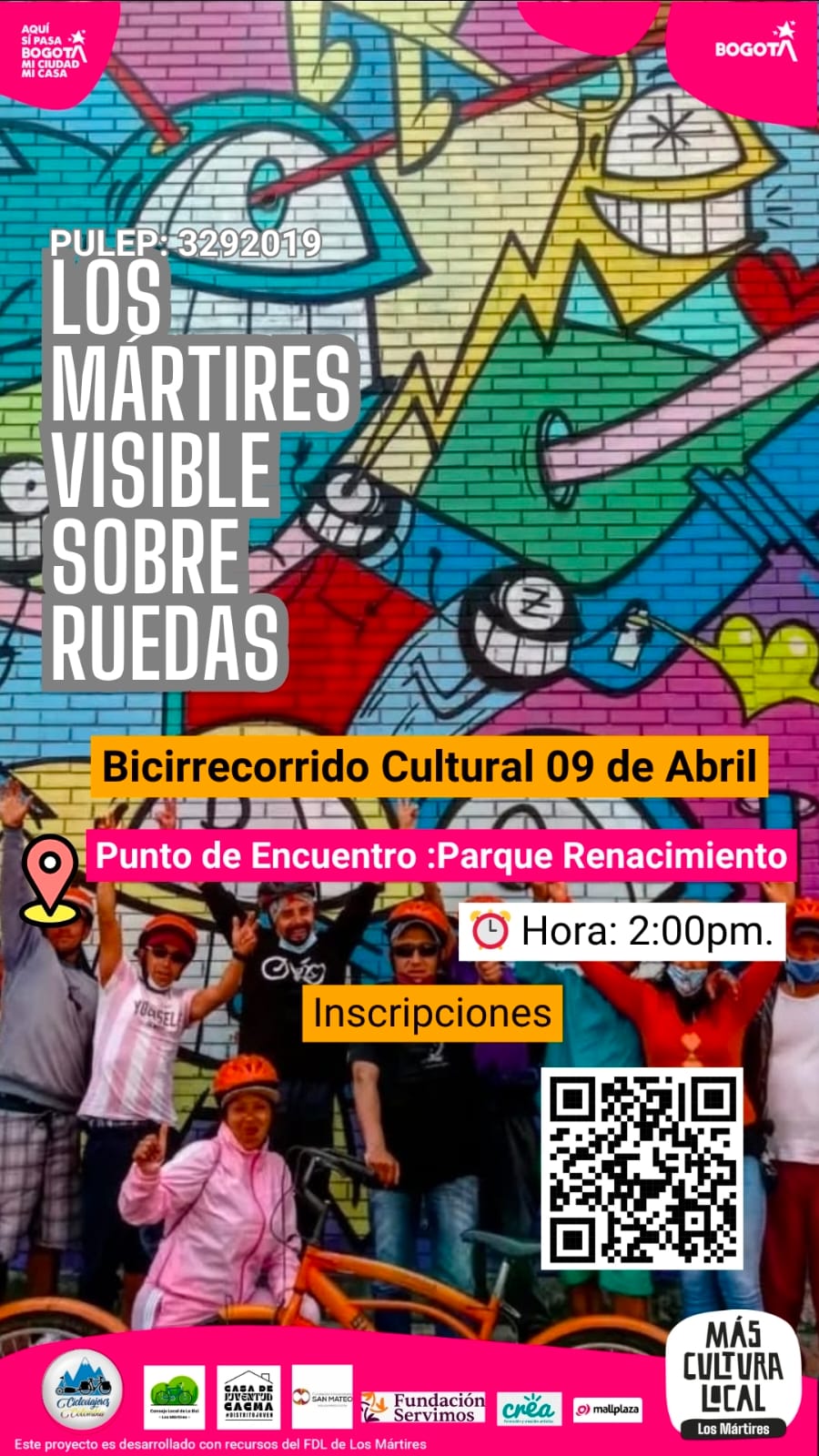 Bicirecorrido cultural de cierre del proyecto “Mártires Visible sobre Ruedas”. Se realizará por la localidad de Los Mártires, recorriendo ocho puntos culturales clave para la comunidad.👉 Desliza para ver más