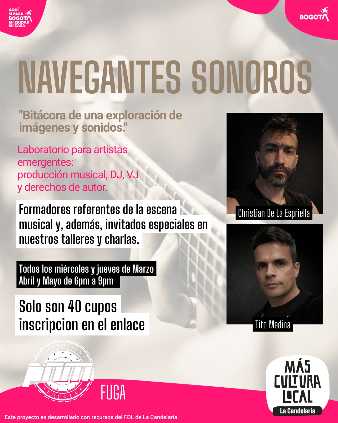 8 , 9, 15 y 16 de abril - 5:00 p.m. a 7:30 p.m.